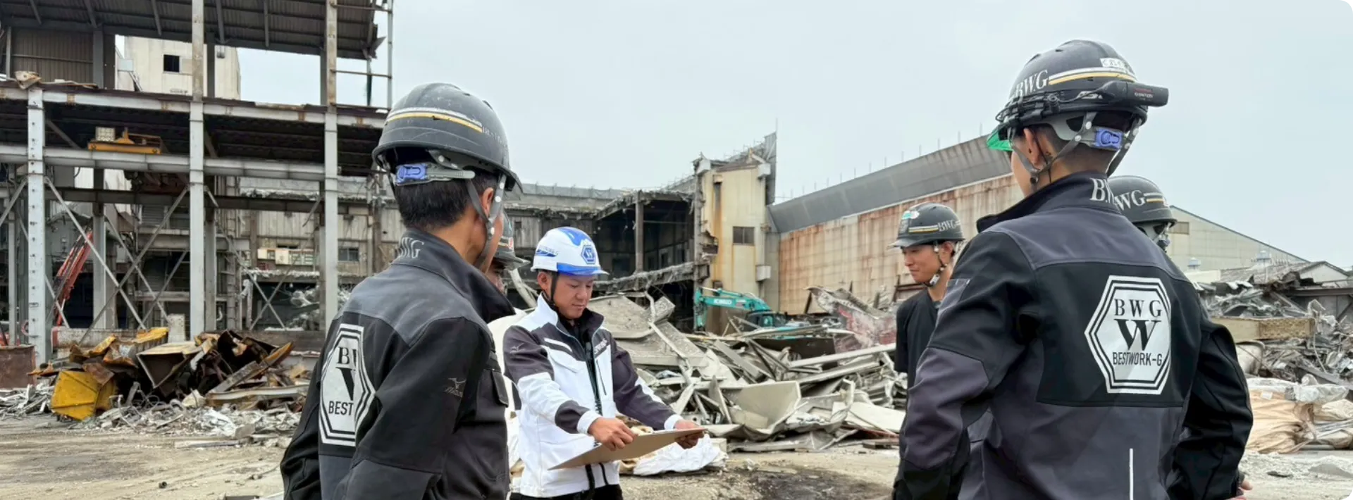 まかせてあんしん解体は、建設副産物の再資源化や廃材の適正処理、アスベストの安全な除去と報告など、
